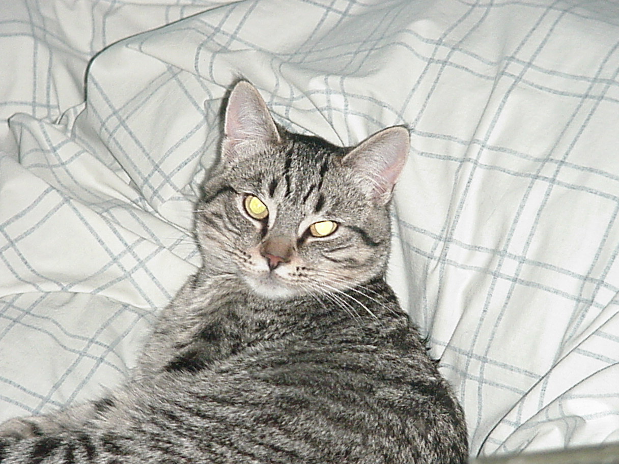 Lightning; previously sleeping on my bed. (Flash is ON) |