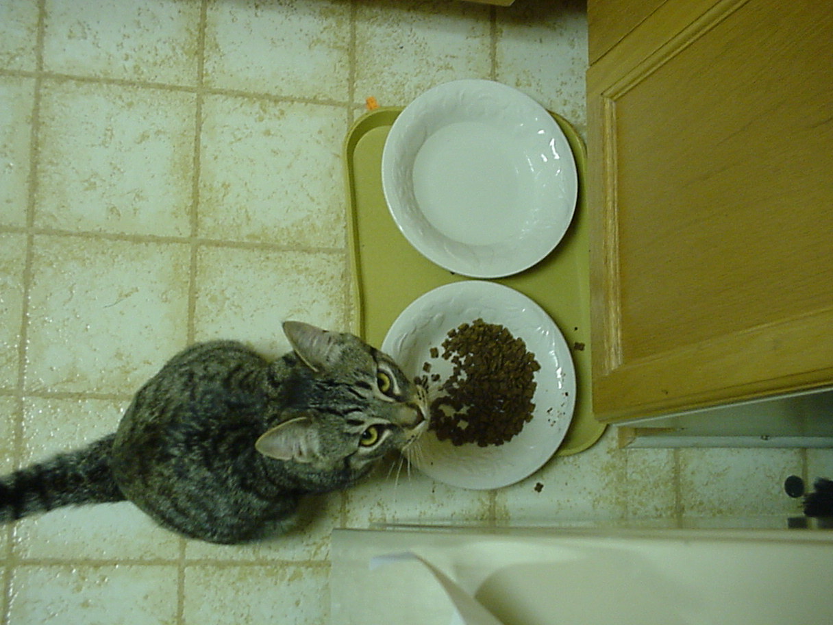 | This is his eating. Just realising that there's something between the fridge and the drawers. Hmm... | |